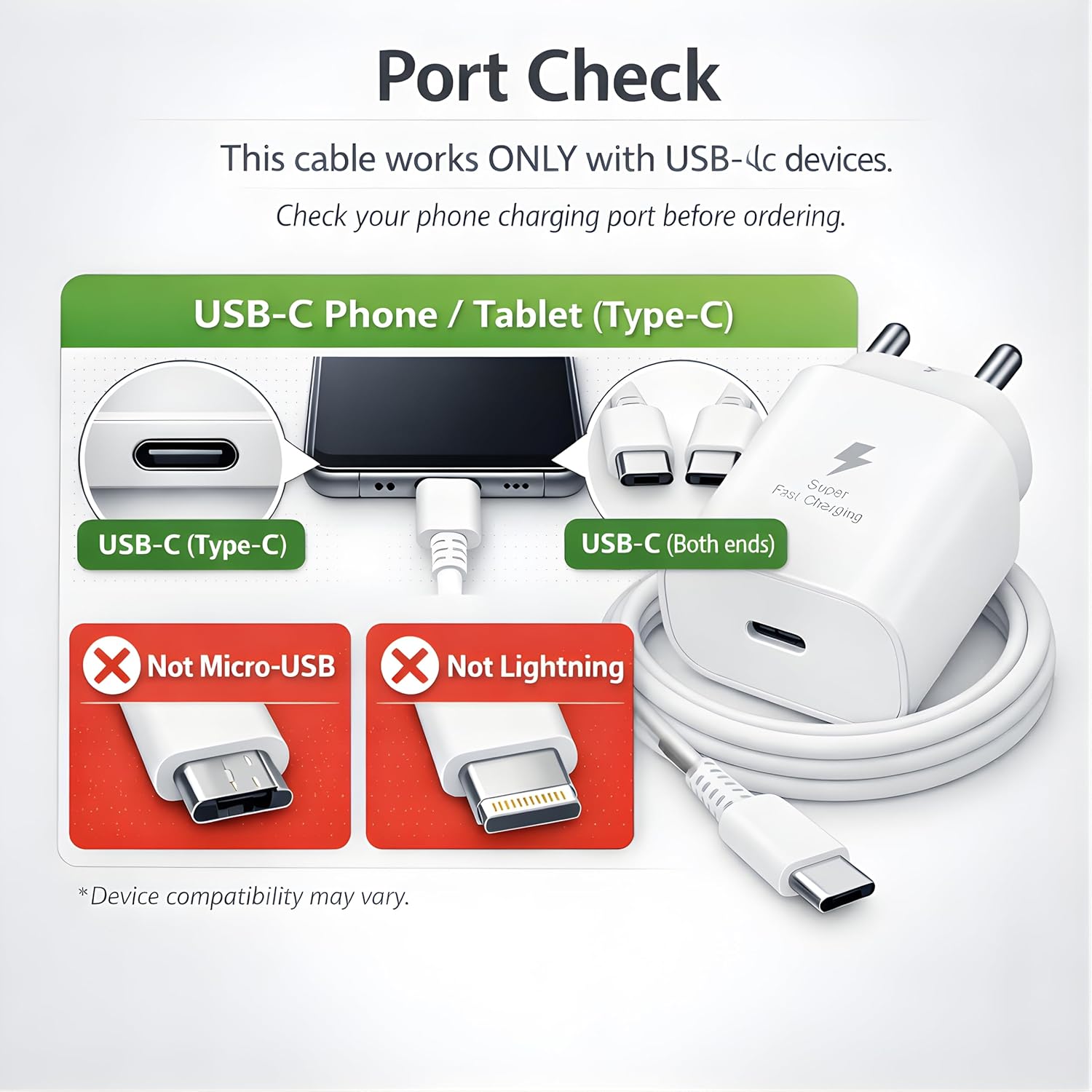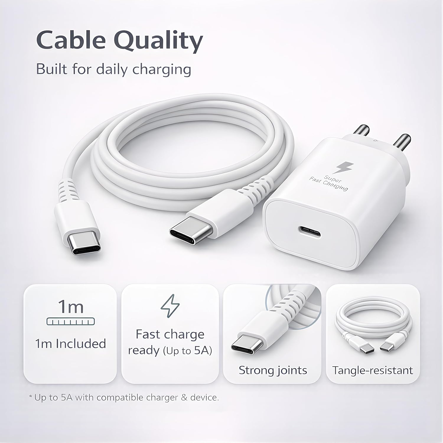 - Universal Type-C Compatibility (2026 Ready) – Designed to work with all USB Type-C (C to C) enabled devices. Compatible with Latest Samsung Devices Samsung Galaxy S26 Ultra, S25, S24 series, and supports all other Type-C smartphones, tablets, and accessories, making it a perfect all-in-one charging solution.