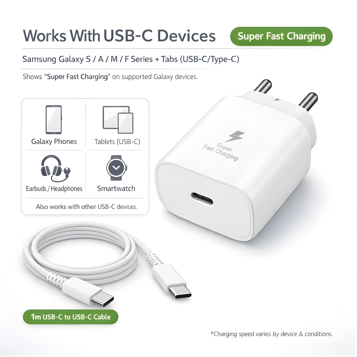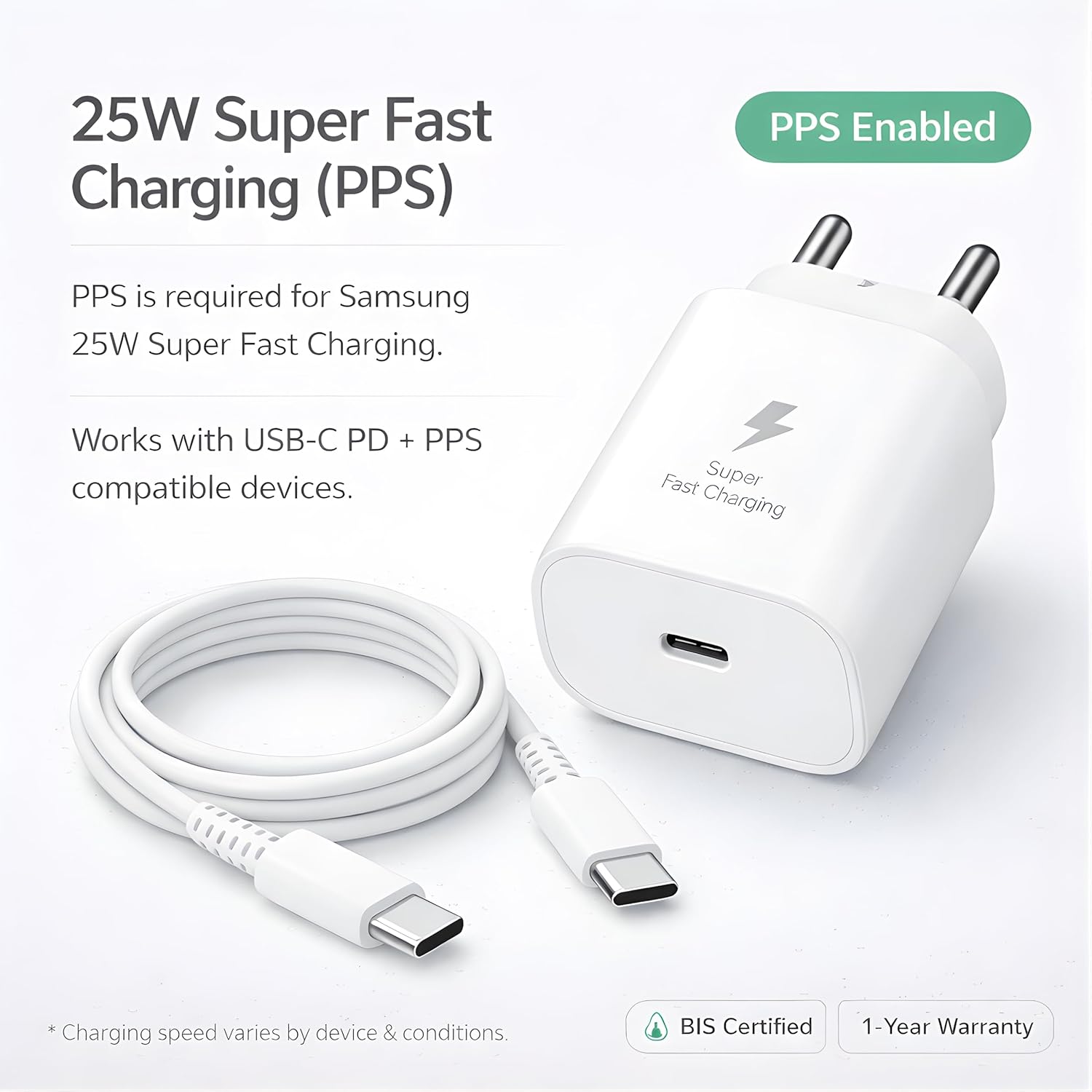 - 25W Super Fast Charging with PPS & PD 3.0 – Engineered with advanced PPS (Programmable Power Supply) and Power Delivery 3.0 technology to deliver true Super Fast Charging on Samsung Galaxy devices. Charge your Galaxy S25/S24 up to 50% in just 30 minutes.