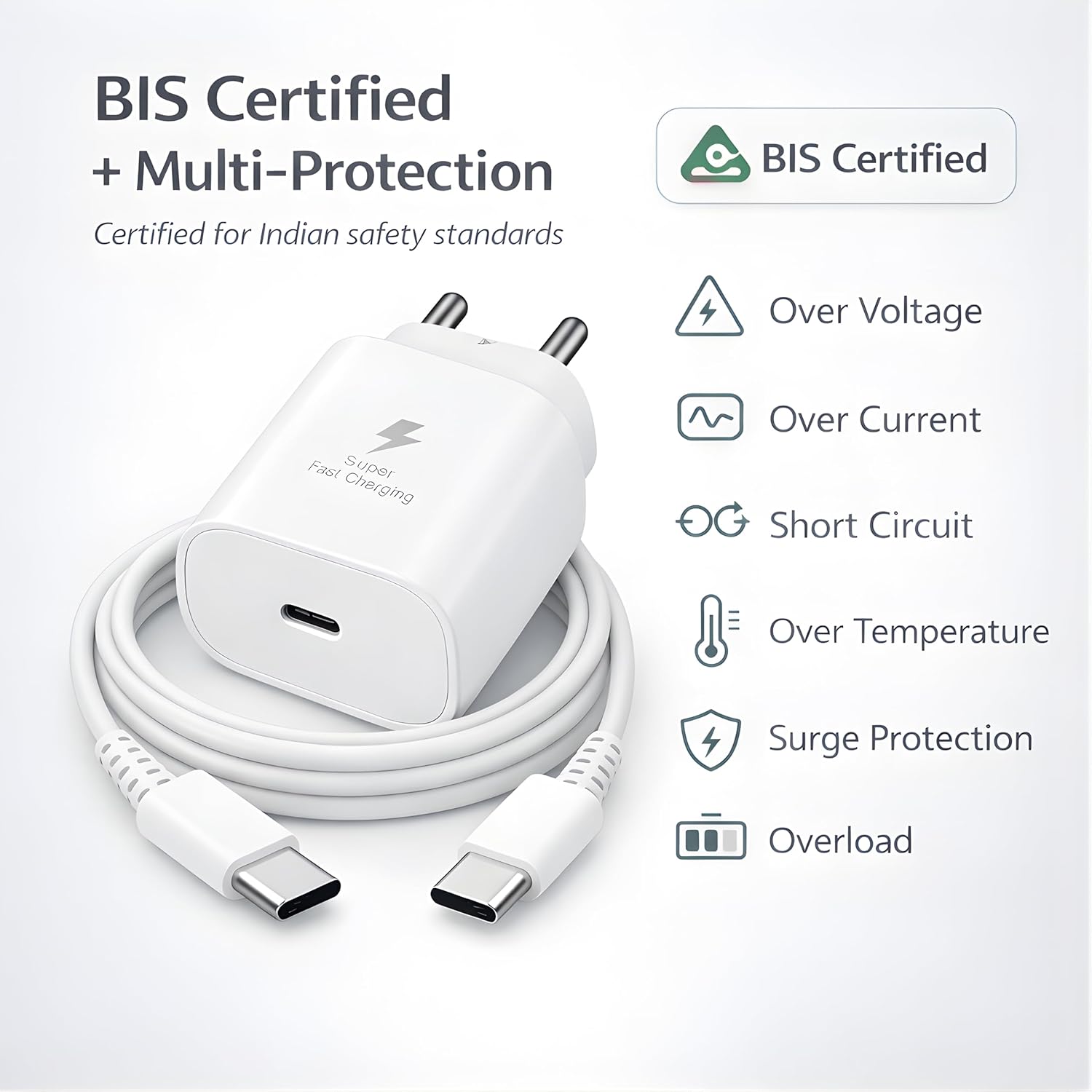 BIS Certified Advanced Safety, Compact Travel-Ready Build, High-Speed Data & Power Sync, PPS Super Fast Charging Technology.