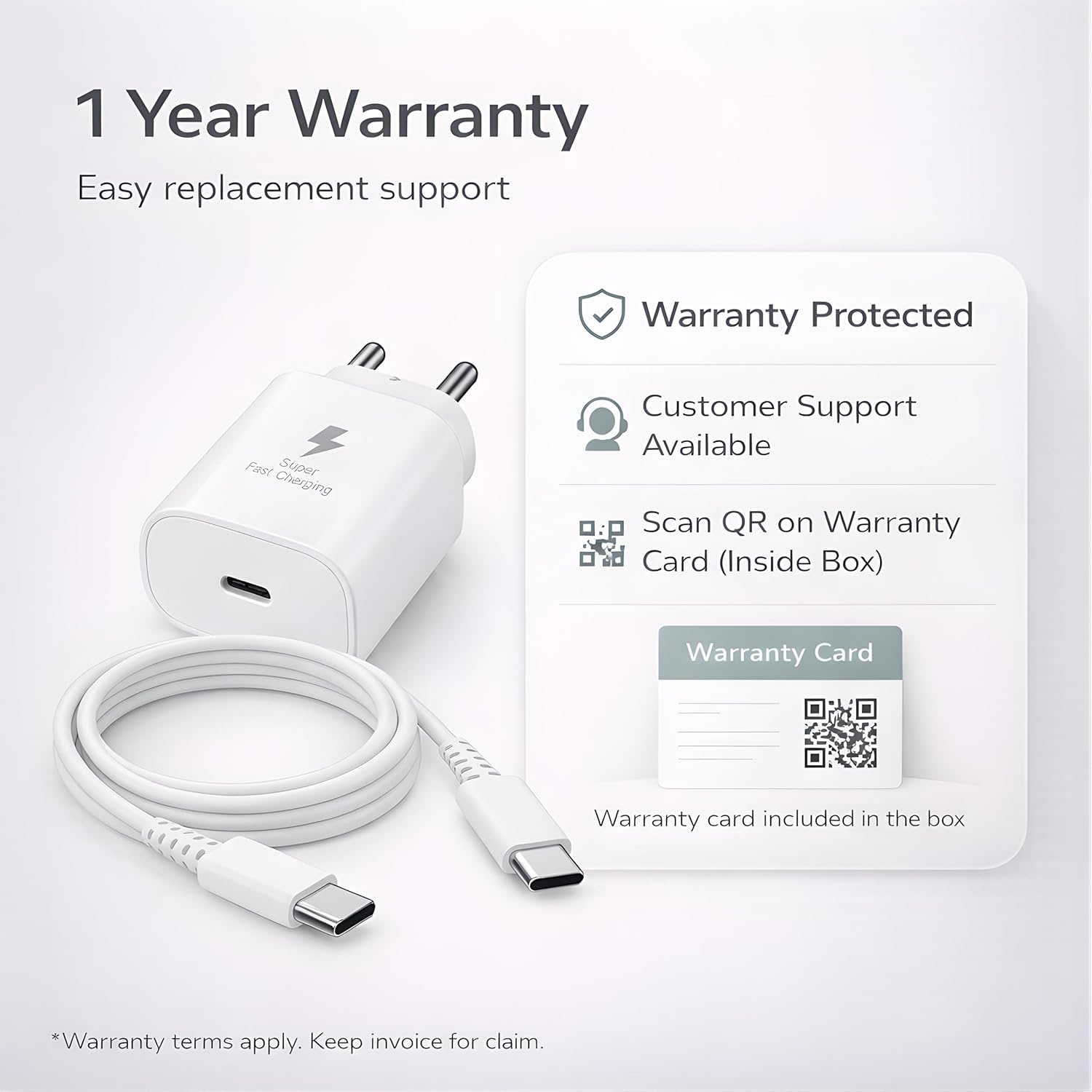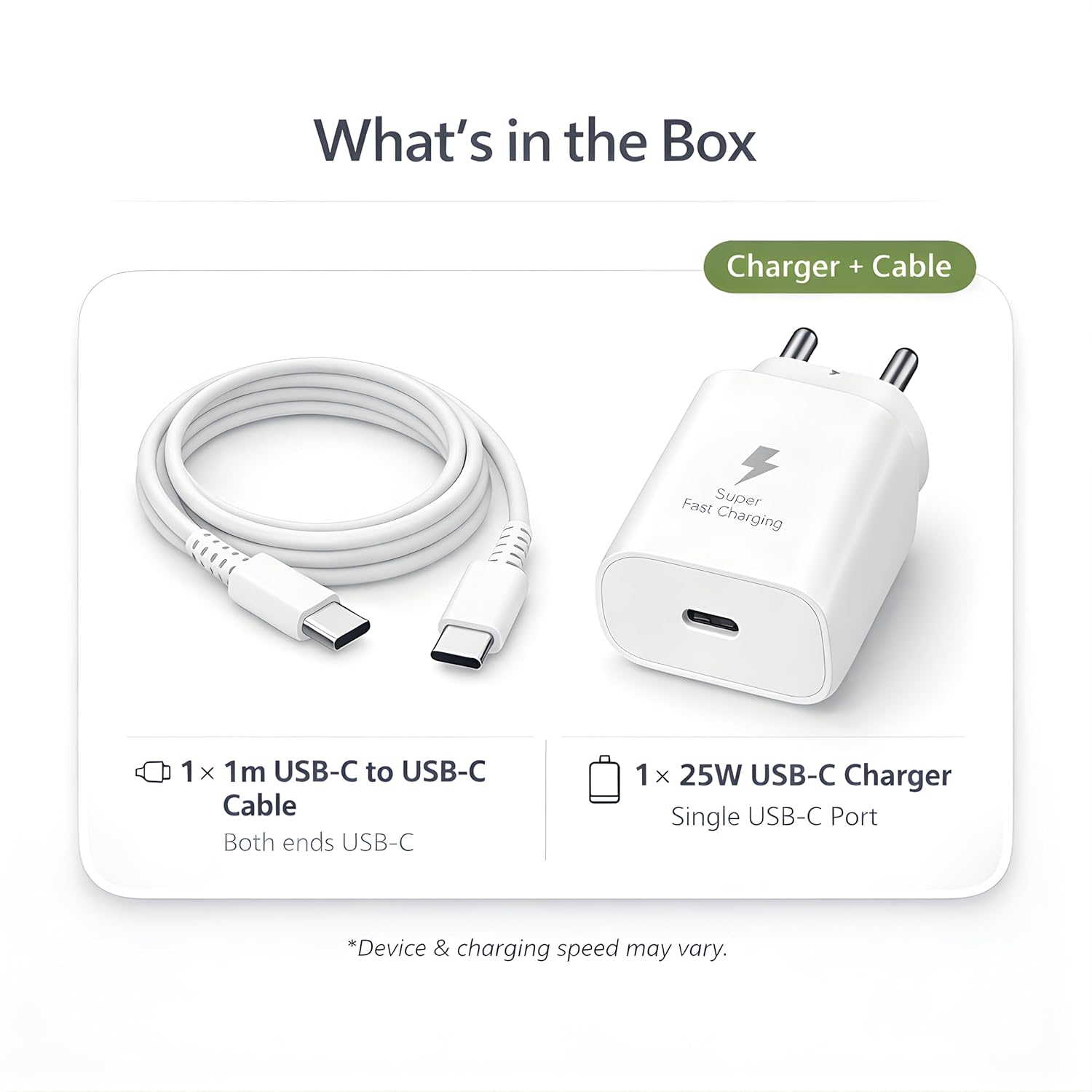 1 x 1-Meter Type-C to Type-C Cable, 1 x 25W USB-C Wall Charger, 1 x Warranty