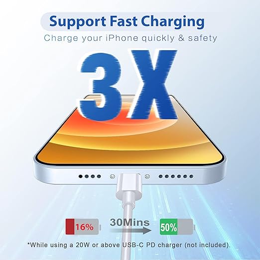 - Wide Compatibility: Supports PD fast charging up to 3A for iPhone 14/14 Pro/14 Pro Max/14 Plus, iPhone 13 series, iPhone 12 series, iPhone 11 series, XS/XR/X/8 series, and iPads including iPad 8th Gen, iPad Pro, iPad Air 3, and iPad Mini 5. (Note: USB-C wall charger required for fast charging.)